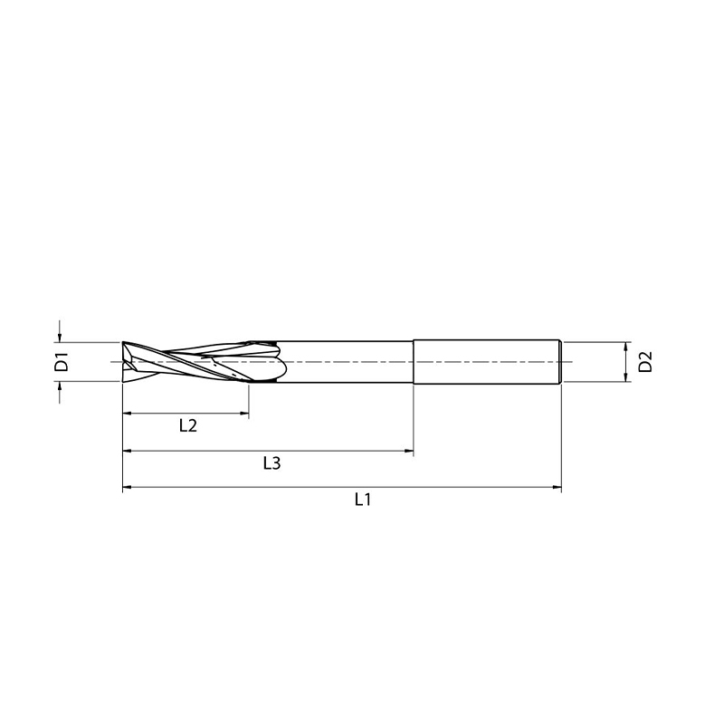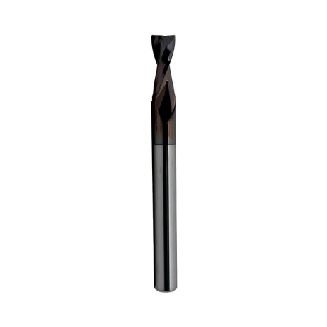 Coated solid carbide tool with right-hand helix, redesigned for machining non-ferrous metals. It resists abrasive wear during the cutting process and prevents aluminium from sticking to the cutting edge: