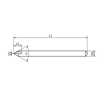 Solid carbide tool with a micro-polished helical flute, designed for engraving and folding. It allows fast chip evacuation, leaving a clean, burr-free surface on plastics and non-ferrous metals.