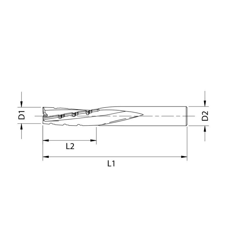 High wear-resistant solid carbide tool, designed with an innovative gradual-action chip breaker. Acts as a heat dissipator and cutting stabiliser, allowing machining of high-density materials at high feed rates, achieving quality finishes without marking the edge. Recommended for cutting: