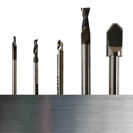 This five-piece set is ideal for sign-makers and professionals working with aluminium composites –such as Dibond®– and thin aluminium sheet. It includes CNC end mills specifically designed for cutting, slotting, engraving and folding these materials and other non-ferrous metals efficiently, without the need for lubrication.